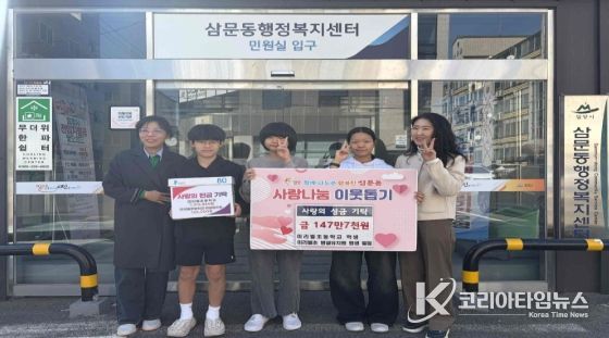 심정자 삼문동장은 “지역사회를 위한 학생ㄴ들의 나눔 실천에 감사드리며, 기탁금은 도움이 필요한 이웃에게 소중히 전달하겠다”라고 밝혔다.