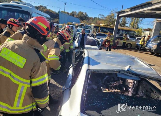 코리아타임뉴스 김태훈 기자 | 경상남도 소방본부는 11월 11일부터 14일까지 진주시 소재 폐차장에서 도내 18개 소방서의 생활안전대원과 펌프차 구조대원 277명을 대상으로 차량 잠금장치 개방 특별구조훈련을 실시했다고 밝혔다.