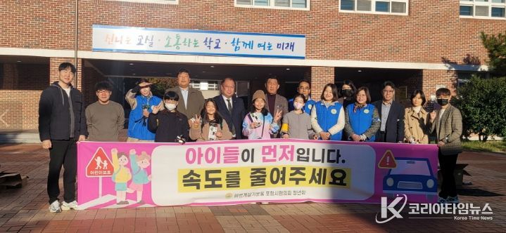 코리아타임뉴스 경북취재본부 | 포항시는 바르게살기운동 포항시협의회 청년회가 어린이 교통사고 예방을 위해 이달 10일과 17일, 스쿨존 ‘안전팔찌 배부 캠페인’을 실시했다고 밝혔다.