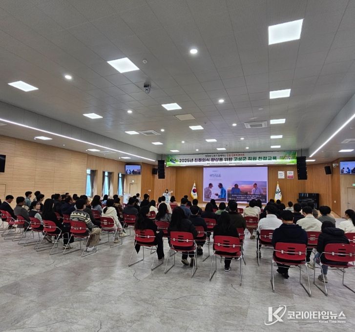 코리아타임뉴스 경남취재본부 | 고성군은 11월 18일, 군청 5층 대회의실에서 ‘명화와 노래가 함께하는 친절 인문학 콘서트’라는 주제로 2025년 직원 친절의식 향상을 위한 친절교육을 실시했다.