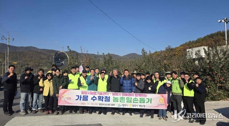 코리아타임뉴스 경남취재본부 | 경남 밀양시는 19일 가을철 사과 수확기를 맞아 산내면 4개 농가에서 밀양시농업기술센터와 범농협 합동으로 농촌 일손돕기를 추진했다고 밝혔다.