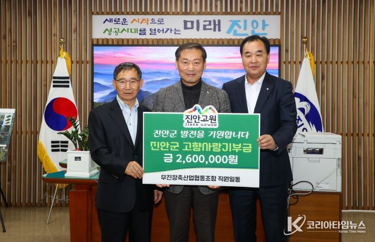 코리아타임뉴스 전북취재본부 | 진안군은 무진장축협(조합장 송제근)이 진안군 고향사랑기부제에 총 260만원을 기탁했다고 19일 밝혔다.