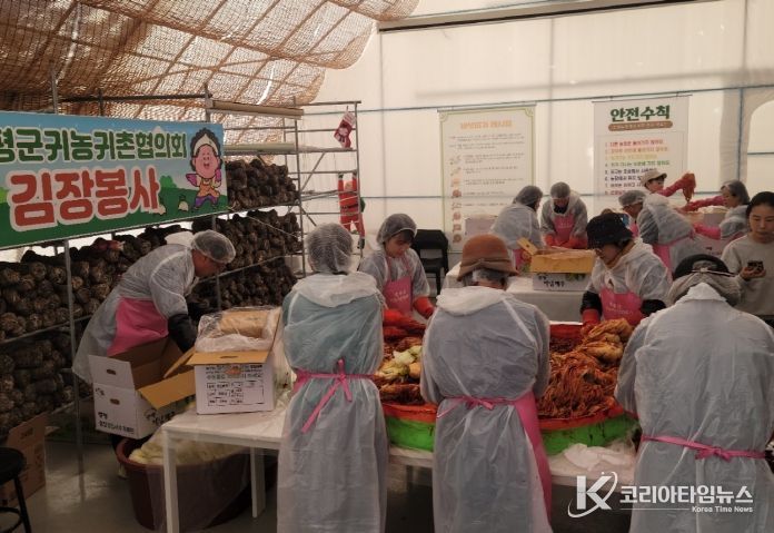 코리아타임뉴스 박찬식 기자 | 충북 증평군은 증평군귀농귀촌협의회(회장 신건석)가 19일 도안면 송정농원 교육장에서 ‘증평군귀농귀촌협의회 김장 나눔 봉사’활동을 진행했다고 밝혔다.