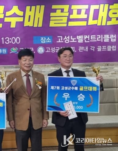 코리아타임뉴스 경남취재본부 | ㈜관보솔루션 한영상 대표는 지난 11월 15일 열린 ‘제7회 고성군수배 골프대회’에서 남성부 우승을 차지하며 수상한 상금 30만 원 전액을 관내 어려운 이웃을 위해 기탁했다.