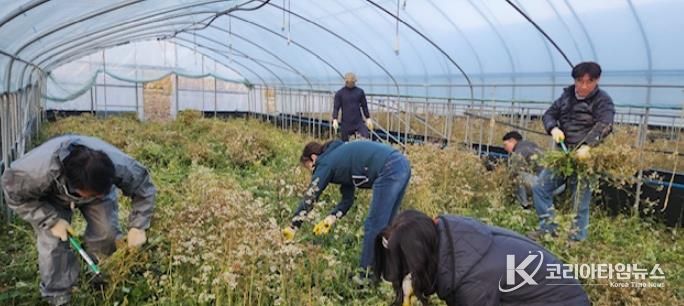 이번 일손돕기는 지난 11월 18일, 고성군 하일면의 취나물 재배 농가에서 실시됐으며, 농촌정책과 직원 10명이 참여해 취나물 채종작업 등 농작업을 도왔다.