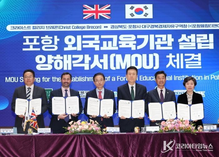 경상북도와 포항시는 20일 포항시청 대회의실에서 영국 왕립 명문학교인 ‘크라이스트 칼리지 브레콘(Christ College Brecon, 이하 CCB)’과 국제학교 설립을 위한 MOU를 체결했다.