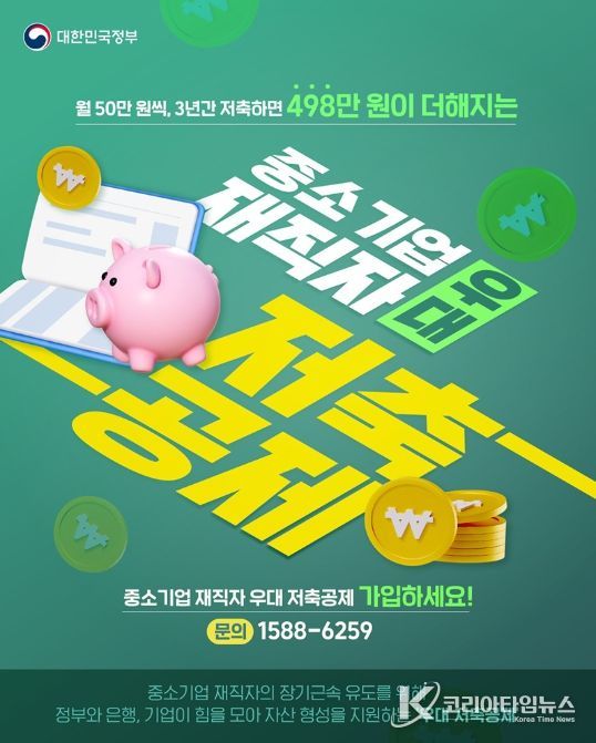 코리아타임뉴스 윤광희 기자 | 월 50만 원씩, 3년간 저축하면 498만 원이 더해지는
