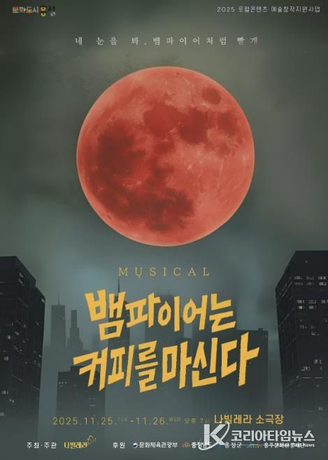 코리아타임뉴스 충남취재본부 | 홍성군은 25일부터 26일까지 나빌레라 소극장에서 ‘뱀파이어는 커피를 마신다’ 공연이 열린다고 밝혔다.