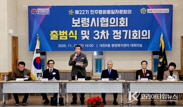 코리아타임뉴스 충남취재본부 | 민주평화통일자문회의 보령시협의회는 지난 21일 대천4동 행정복지센터 대회의실에서 김동일 보령시장과 정윤 민주평통 충남부의장, 자문위원 등 60명이 참석한 가운데 ‘제22기 출범식 및 2025년 3차 정기회의’를 개최했다.