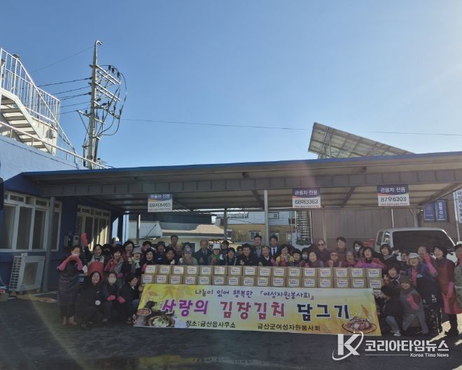 코리아타임뉴스 충남취재본부 | 금산군여성자원봉사협의회(회장 최미숙)는 지난 20일부터 21일까지 금산읍행정복지센터에서 김장 나눔으로 따뜻한 이웃 사랑을 실천했다.