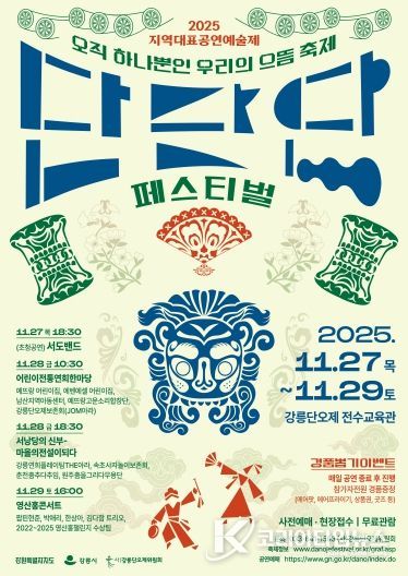 코리아타임뉴스 노승선 기자 | (사)강릉단오제위원회는 오는 11월 27일부터 29일까지 강릉단오제전수교육관 일원에서 ‘2025 단단단페스티벌’을 개최한다고 밝혔다. ‘단단단(端單團)’은 으뜸 단(端), 오직 하나 단(單), 우리 단(團)을 뜻하며 “오직 하나뿐인 우리의 으뜸 축제”를 의미한다.