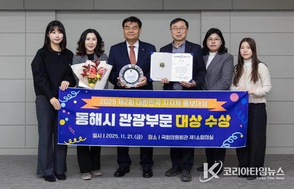 코리아타임뉴스 이아름 기자 | 동해시는 지난 21일 서울 국회의원회관에서 열린 ‘제2회 대한민국 지자체 홍보대상 시상식’에서 관광분야 우수 홍보 지자체로 선정됐다.