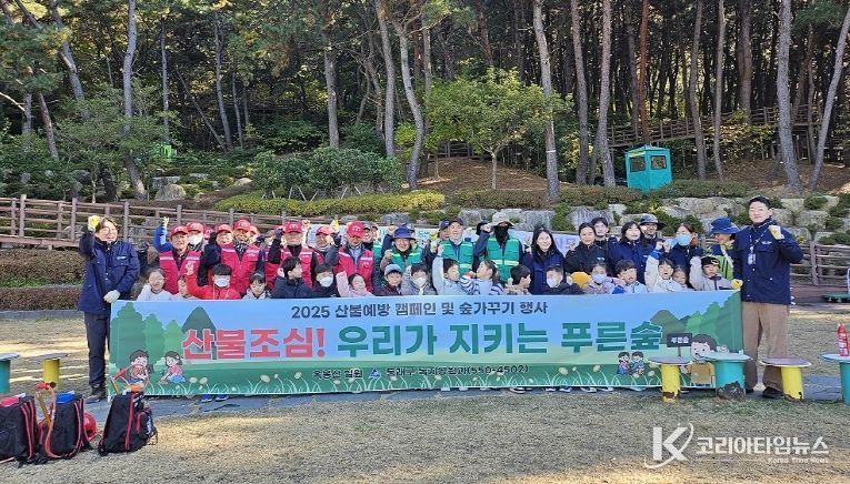 이날 참여한 어린이들은 산불 예방 행동 요령 교육을 듣고, 등짐펌프 및 개인용 소화기 시연을 직접 관찰하며 산불 진화 장비의 역할을 이해하는 시간을 가졌다. 또한 옥봉산 조림지에서 반려동물 친화형 고형비료를 주는 숲 가꾸기 활동과 함께 꽃무릇 식재 체험에 참여하며 건강한 산림을 만드는 데 동참했다.