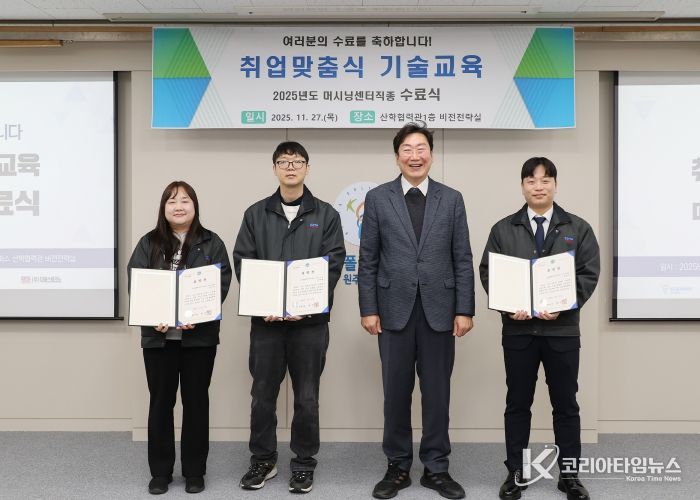 코리아타임뉴스 김택호 기자 | ㈜디에스테크노 취업연계맞춤과정 수료식이 27일 오전 10시, 한국폴리텍대학 원주캠퍼스에서 개최됐다.