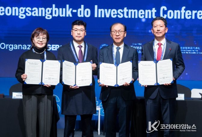 코리아타임뉴스 김택호 기자 | 구미시는 11월 27일 그랜드 인터컨티넨탈 서울 파르나스에서 ㈜코람코자산운용 김태원 대표, ㈜호암글로벌 이우호 대표를 비롯하여 이철우 경상북도지사, 김장호 구미시장이 참석한 가운데 구미 산단 내 브랜드호텔 건립과 운영을 위한 4자 간 투자양해각서(MOU) 체결식을 개최했다.