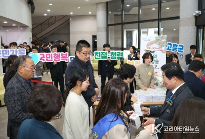 한편, 고흥군은 ▲친절 우산 대여 ▲전자민원센터(민원인 전용 컴퓨터, 팩스, 프린터) 운영 ▲건강관리 코너(신장 측정기, 혈압측정기, 마사지기) 운영 ▲민원서류 작성 정보무늬(QR 코드) 비치 ▲매주 화요일 야간 민원실 운영 ▲찾아가는 현장 행복민원실 운영 등 민원인 편의 증진을 위해 다양한 시책을 추진하고 있다.