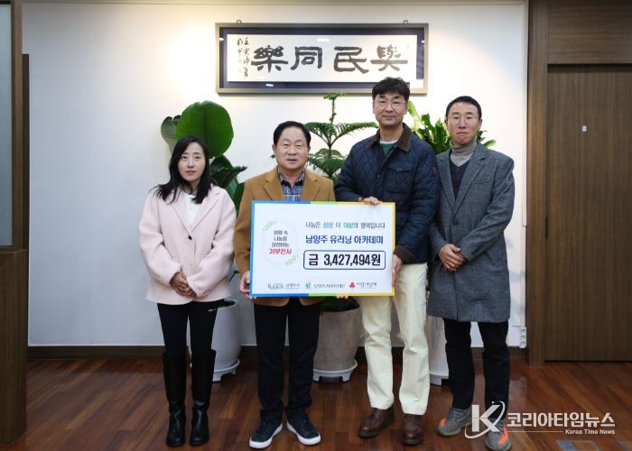 코리아타임뉴스 경기취재본부 | 남양주시는 12월 3일 남양주시 유러닝 아카데미가 러닝 마일리지로 모은 후원금 3,427,494원을 남양주시복지재단에 전달했다고 밝혔다.