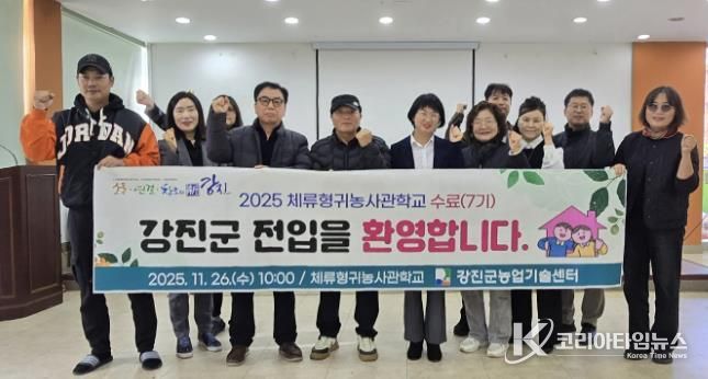 코리아타임뉴스 노승선 기자 | 강진군은 지난달 26일 체류형귀농사관학교 7기 교육생 수료식을 열고, 9개월간의 체류·교육 과정을 성공적으로 마친 교육생들이 강진에서의 새로운 정착 단계에 들어섰다고 4일 밝혔다.