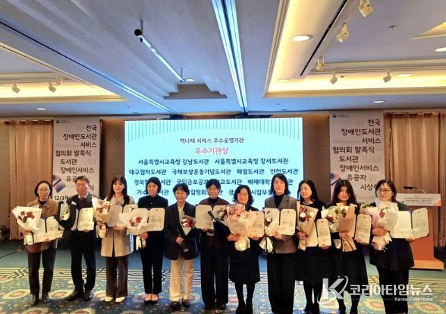 코리아타임뉴스 대전취재본부 | 대전 서구 가수원도서관은 국립장애인도서관 주관 ‘2025년 도서관 장애인 서비스 유공자 시상식’에서 책나래 서비스 우수기관상을 수상했다고 4일 전했다.