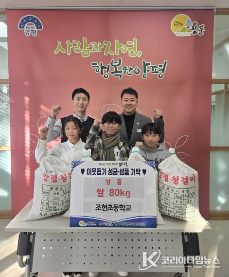 코리아타임뉴스 기동취재팀 | 양평군 용문면은 지난 5일 조현초등학교 학생들이 쌀 80kg을 어려운 이웃을 위해 기부했다고 밝혔다.