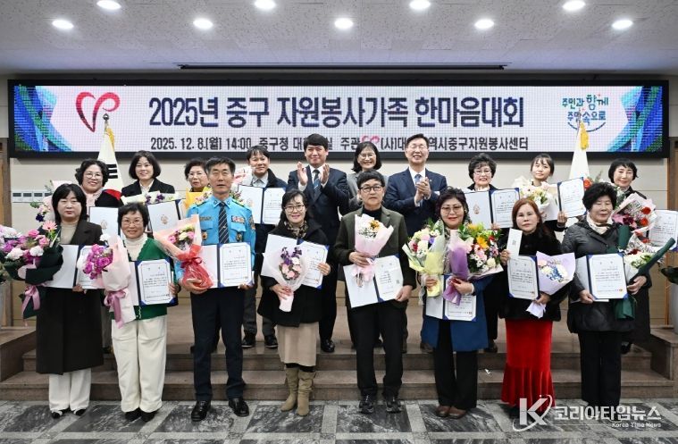 코리아타임뉴스 대전취재본부 | 대전 중구는 8일 중구청 대회의실에서 중구 자원봉사센터(센터장 김진화) 주관으로 ‘2025년 자원봉사 가족 한마음대회’를 개최했다고 밝혔다.