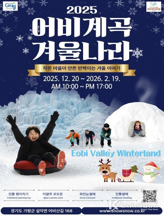 코리아타임뉴스 기동취재팀 | 가평군은 이달 20일부터 시작하는 ‘2025 어비계곡 겨울나라’ 축제와 연계한 겨울테마여행 철도관광상품을 출시했다고 11일 밝혔다. 군은 코레일관광개발㈜과의 업무협약을 기반으로 아이티엑스(ITX)-청춘 열차를 활용한 테마형 관광상품을 지난 4월부터 추진해 왔다.