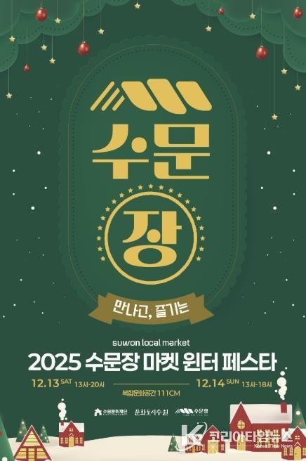코리아타임뉴스 이아름 기자 | 수원문화재단 문화도시센터가 오는 13일과 14일 복합문화공간 111CM에서‘2025 수문장 마켓 윈터 페스타’를 개최한다.