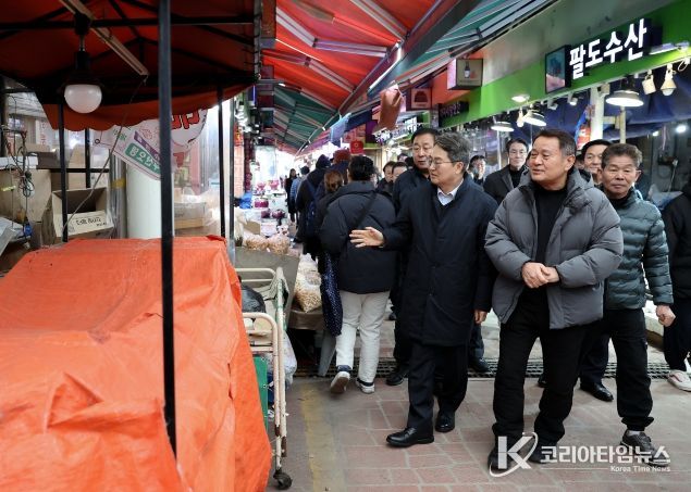 코리아타임뉴스 이아름 기자 | 15일 부천에서 민생경제 현장투어를 진행 중인 김동연 경기도지사가 오정구 원종동에 위치한 제일시장을 다시 방문해 지난달 발생한 트럭 돌진 사고 피해 수습 현황을 점검하고 상인들을 위로했다.