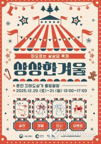 코리아타임뉴스 이아름 기자 | 춘천시가 20~21일 이틀간 춘천 지하도상가 중앙광장 일대에서 조운소양동 도시재생사업 ‘2025 상상 한 겨울’ 축제를 연다.
