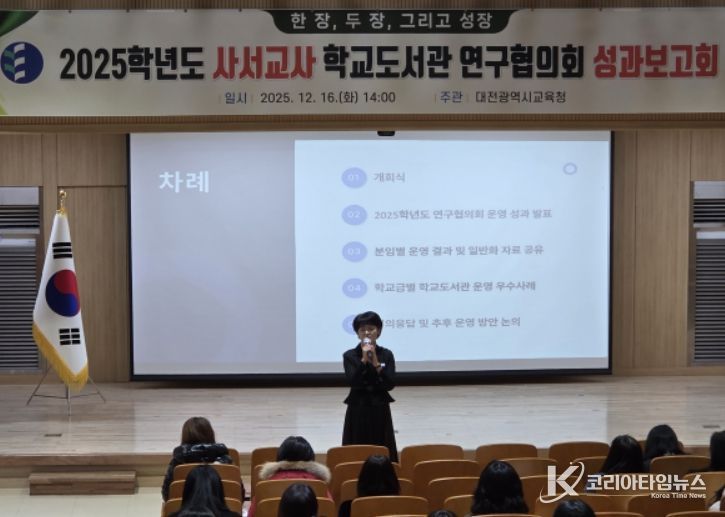 코리아타임뉴스 사회팀 | 대전시교육청은 12월 16일 대전 관내 사서교사 및 학교도서관·독서교육 담당 교사를 대상으로 ‘2025학년도 사서교사 학교도서관 연구협의회 성과보고회’를 개최했다고 밝혔다.