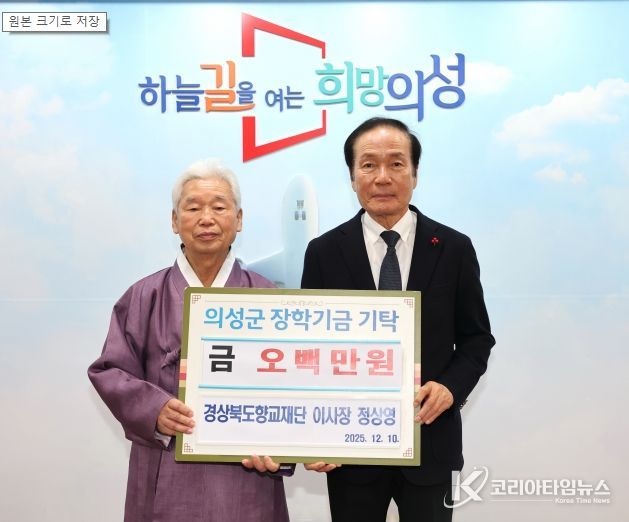 코리아타임뉴스 노승선 기자 | 재단법인 의성군인재육성재단(이사장 김주수 의성군수)은 지난 12월 10일 경상북도 향교재단 정상영 이사장이 의성군 인재 육성을 위해 장학금 500만 원을 기탁했다고 밝혔다.