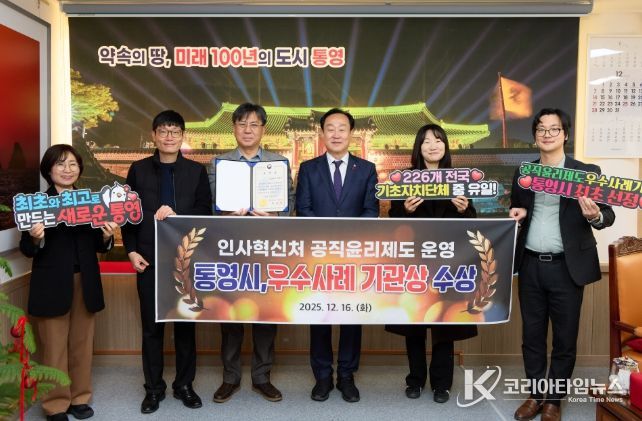 코리아타임뉴스 오영주 기자 | 통영시는 지난 16일 인사혁신처가 주관하는‘공직윤리제도 운영 평가’에서 우수사례기관으로 선정돼 정부세종청사에서 인사혁신처장상을 수상했다.