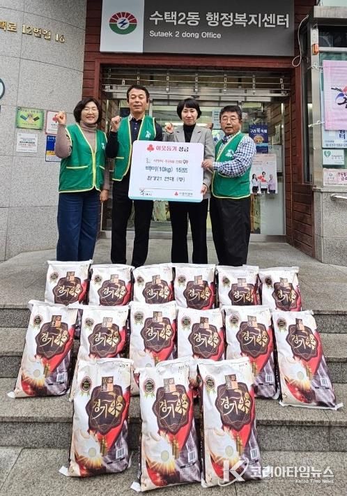 코리아타임뉴스 경기취재본부 | 구리시 수택2동은 지난 16일 구리시 환경21연대로부터 50만원 상당의 백미 10kg 15포를 후원받았다고 밝혔다.