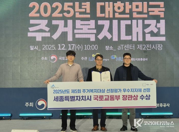 코리아타임뉴스 세종취재분부 | 세종특별자치시가 국토교통부 주관 ‘대한민국 주거복지대전’에서 우수지자체로 선정됐다.