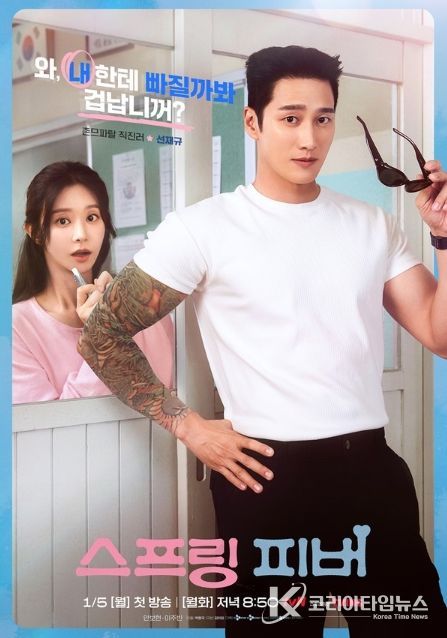 2026년 1월 5일(월) 첫 방송 예정인 tvN 새 월화드라마 ‘스프링 피버’(연출 박원국 /극본 김아정 /기획 CJ ENM STUDIOS /제작 본팩토리)는 찬바람 쌩쌩부는 교사 윤봄(이주빈 분)과 불타는 심장을 가진 남자 선재규(안보현 분)의 얼어붙은 마음도 녹일 봄날의 핫!핑크빛 로맨스다.