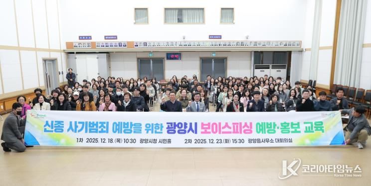 코리아타임뉴스 전남취재본부 | 광양시는 최근 중앙부처·지자체 공무원 사칭 범죄와 개인정보 유출 등으로 보이스피싱 피해 우려가 커짐에 따라, 18일 시청 시민홀에서 시민 대상 보이스피싱 예방·홍보 교육을 실시했다고 밝혔다.