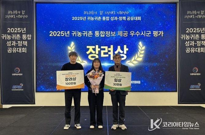 코리아타임뉴스 노승선 기자 | 의성군은 농림축산식품부가 주관한 ‘2025년 귀농귀촌 통합 성과정책 공유대회’에서 ‘귀농귀촌 통합정보 제공 우수 시군 평가’ 부문 장려상을 수상했다고 밝혔다.