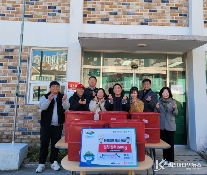 코리아타임뉴스 전남취재본부 | 여수시는 윤심이네 실비집·여수김치남(대표 김윤심)이 지난 18일 연말을 맞아 3백만 원 상당의 김장김치 200kg을 관내 아동양육시설에 전달했다고 밝혔다.