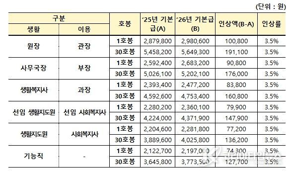 이는 예년의 1%p 안팎이던 상승분을 약 2배가량 높인 수치로, 사회복지시설 종사자 처우개선에 대한 정부의 의지가 반영된 결과이다. 처우개선 실현을 위해 '26년 10종 국고지원시설 예산은 전년보다 7.6% 인상된 9,812억원이 편성됐다.