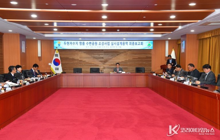 코리아타임뉴스 울산취재본부 | 울산 울주군이 19일 군청 이화홀에서 이순걸 군수와 관계 공무원 등이 참석한 가운데 ‘두현저수지 명품 수변공원 조성사업 실시설계용역’ 최종보고회를 개최했다.