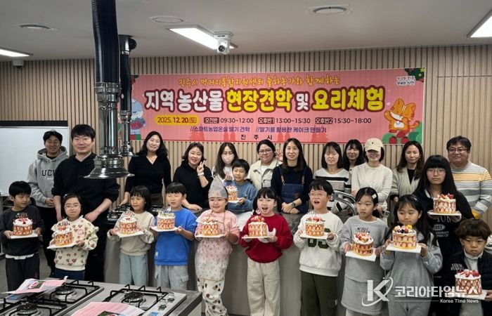 이번 행사는 ‘진주시먹거리통합지원센터’가 중심이 돼 추진한 사업으로, 관내 초등학생과 학부모로 구성된 37개 팀(총 74명)이 참여했다. 참여 가족들은 스마트농업온실에서 재배되는 딸기를 직접 수확해 먹어도 보고, 지역 농업인들이 재배한 딸기를 활용해 케이크 만들기 체험도 하면서 힐링하는 시간을 가졌다.