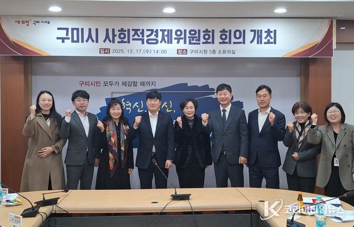 코리아타임뉴스 노승선 기자 | 구미시는 지난 17일 시청 3층 소회의실에서 위원 7명이 참석한 가운데 ‘2025년 구미시 사회적경제위원회 회의’를 개최했다.