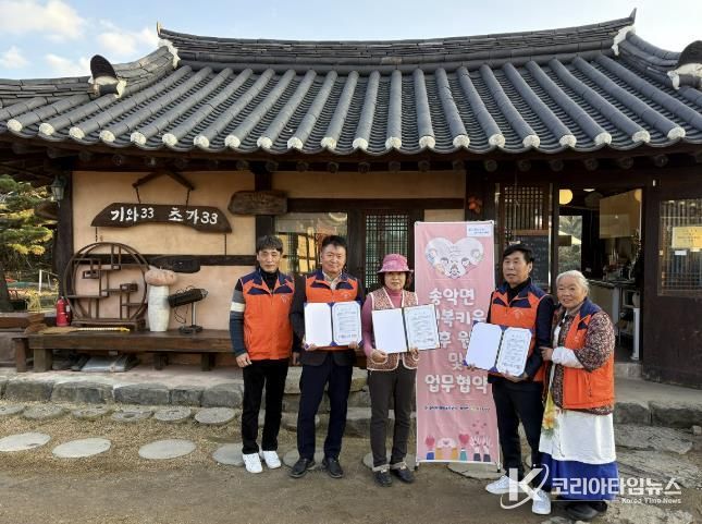 코리아타임뉴스 김택호 기자 | 아산시 송악면 행복키움추진단은 지난 19일 송악면 소재 카페 ‘기와33·초가33’과 지역 내 취약계층 지원을 위한 후원협약을 체결했다.