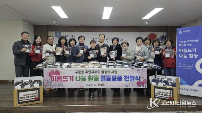 코리아타임뉴스 사회팀 | 지난 19일, 권선구 구운동 주민자치회가 주민자치회 활성화 사업 일환으로 추진한 ‘마음 뜨기 나눔 활동’을 통해 만든 목도리 400여 개를 구운동 행정복지센터에 전달했다.