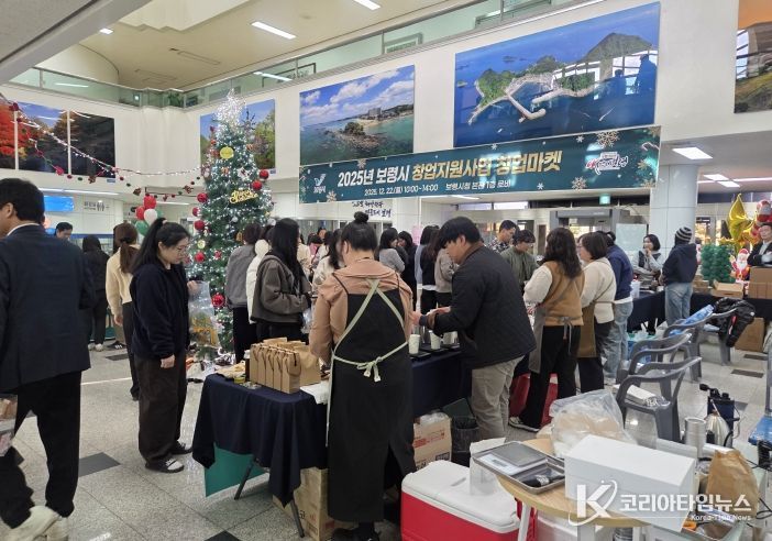 코리아타임뉴스 충남취재본부 | 보령시는 22일 시청 본관 1층 로비에서 2025년 창업지원사업 ‘창업마켓’을 개최하고, 지역 창업기업의 제품 홍보와 판로 개척을 지원하는 뜻깊은 자리를 마련했다.
