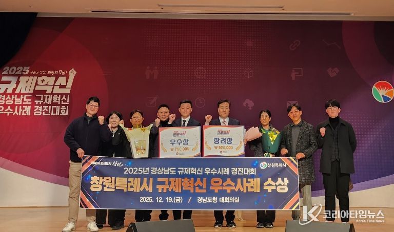 코리아타임뉴스 오영주 기자 | 창원특례시는 19일 경상남도가 주관한 ‘2025년 경상남도 규제혁신 우수사례 경진대회’에서 우수상과 장려상을 각각 수상했다고 밝혔다.