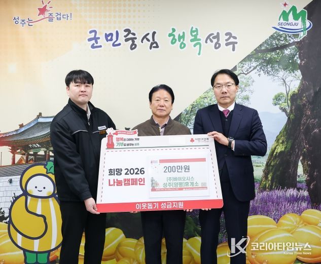코리아타임뉴스 경북취재본부 | ㈜바이오시스 성주(양평, 창원)휴게소(소장 조희규)에서는 12월 22일(월) 관내 취약계층을 위한 성금 200만 원을 기탁하며 희망2026나눔캠페인에 동참했다.