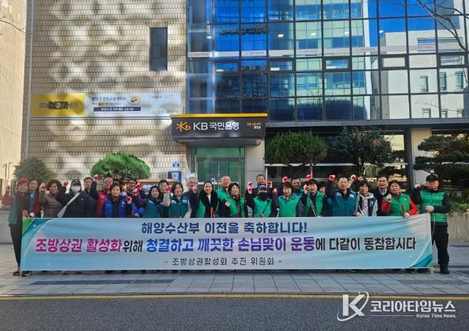 코리아타임뉴스 부산취재본부 | 부산 동구 범일2동은 지난 12월 18일 해양수산부 임시청사 개청을 앞두고 조방상권 활성화를 위한 손님맞이 도시환경정비를 실시했다.