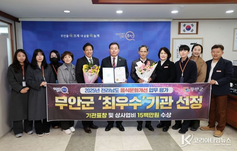 코리아타임뉴스 노승선 기자 | 무안군은 전라남도 주관 2025년 음식문화개선 사업 평가에서 ‘최우수’ 기관으로 선정되어 기관 표창과 함께 상사업비 1천5백만 원을 확보했다.