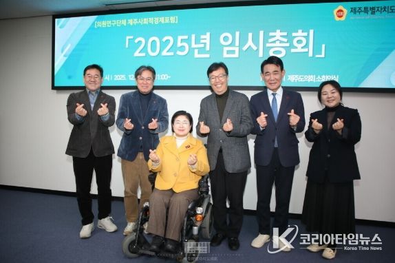 코리아타임뉴스 이아름 기자 | 제주특별자치도의회 의원연구단체인 '제주사회적경제포럼'(대표의원 이남근, 국민의힘, 비례대표)은 12월 22일(월) 2025년 임시총회를 개최하고 2025년 연구단체 활동을 마무리했다.